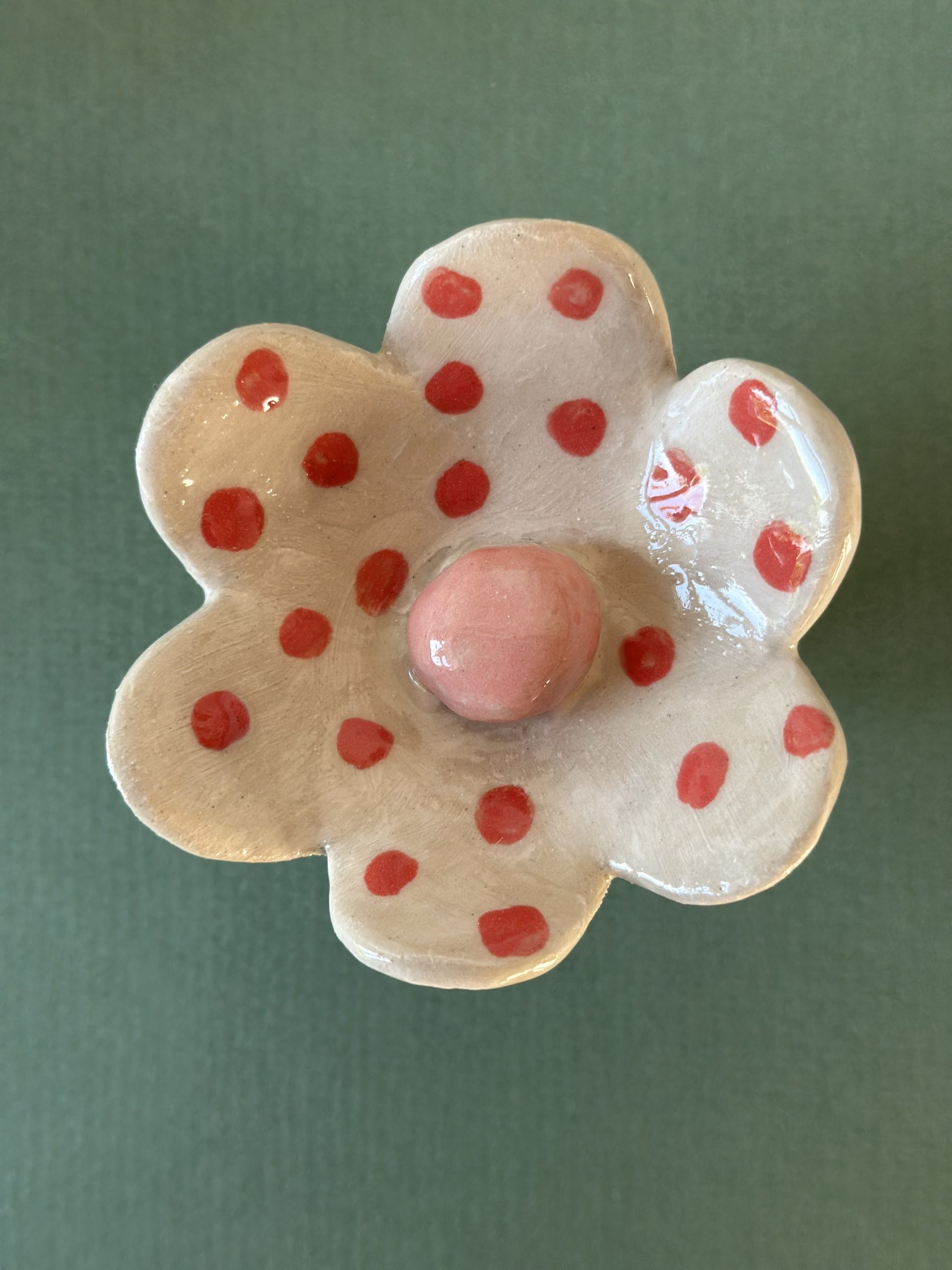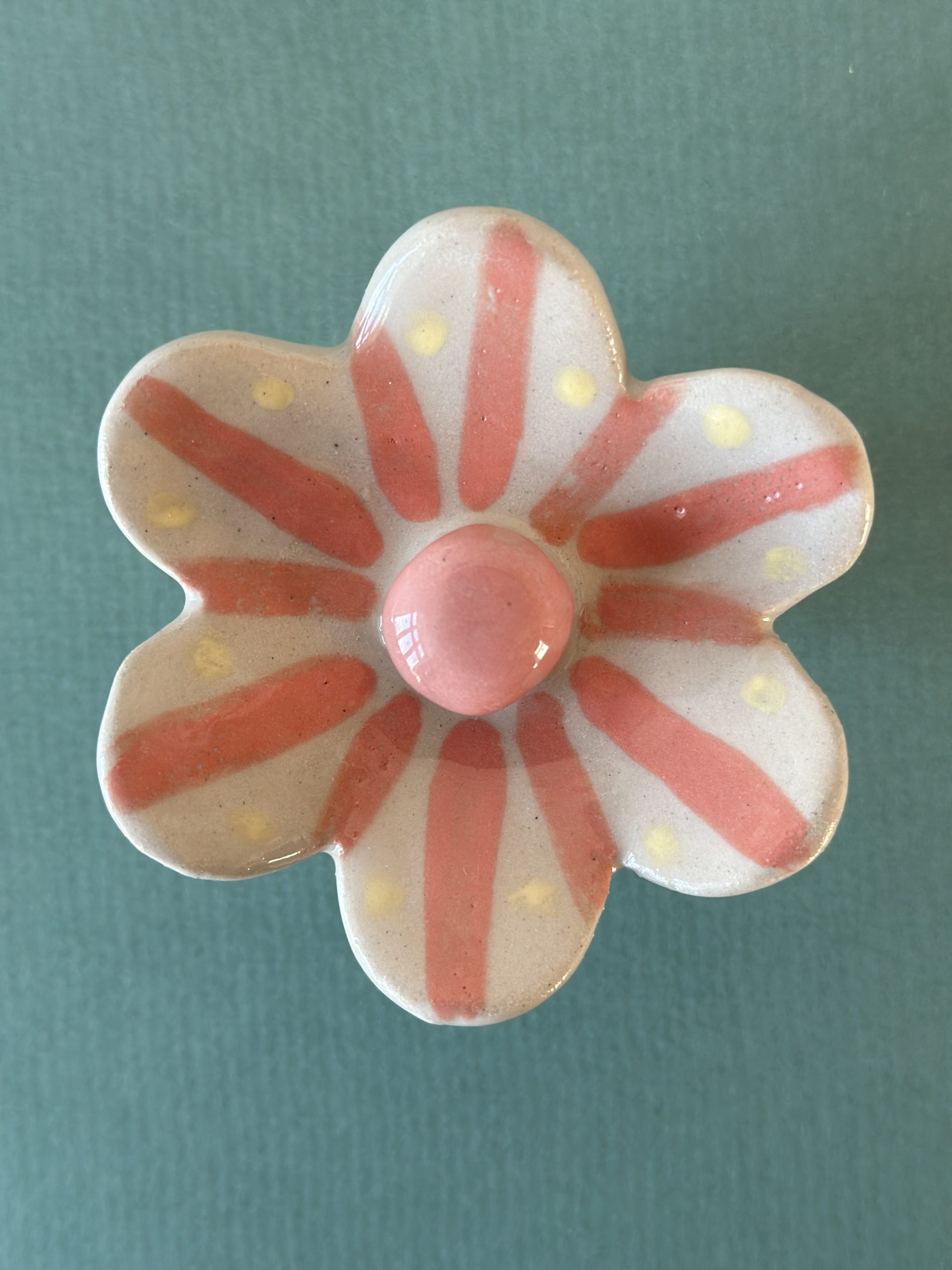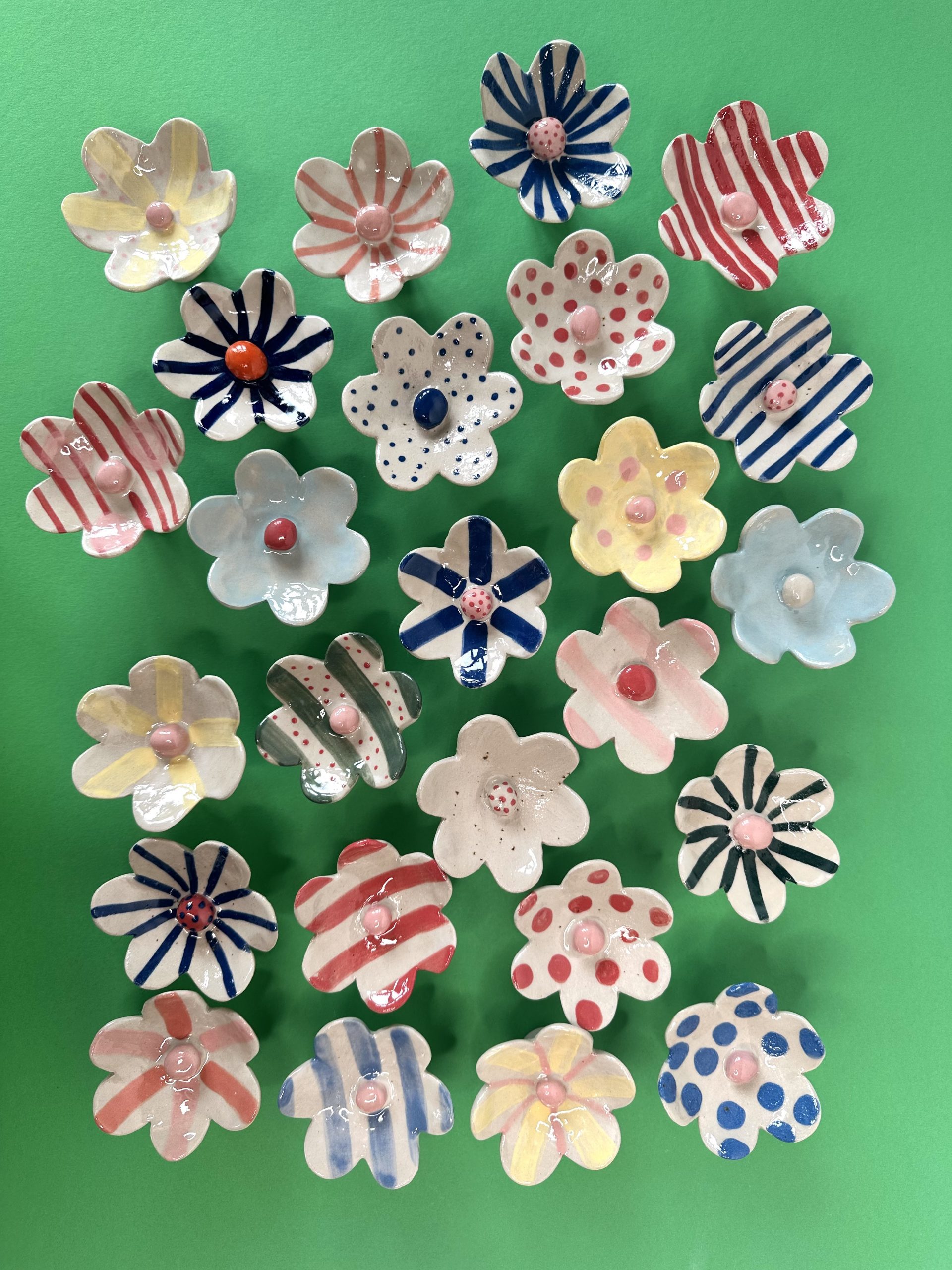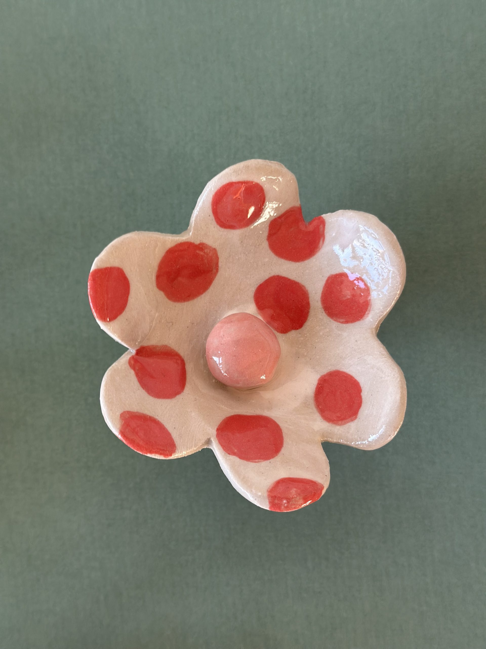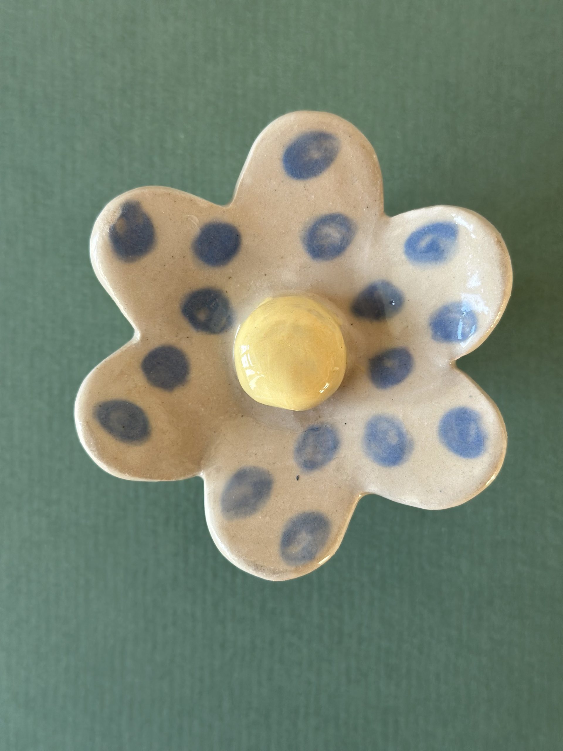 Die Bienentränke passen gut auf kleine Holz-, Bambus- oder Metallstäbe, die dann zwischen deinen Blumen im Beet stecken. Giesse sie einfach mit, wenn du deine Blumen giesst. Durch die Vertiefung steht dann ein bisschen Wasser in der Blüte, so dass die Insekten gut daraus trinken können. Damit sie nicht ertrinken haben die Bienentränken einen erhöhten Stempel in der Mitte.