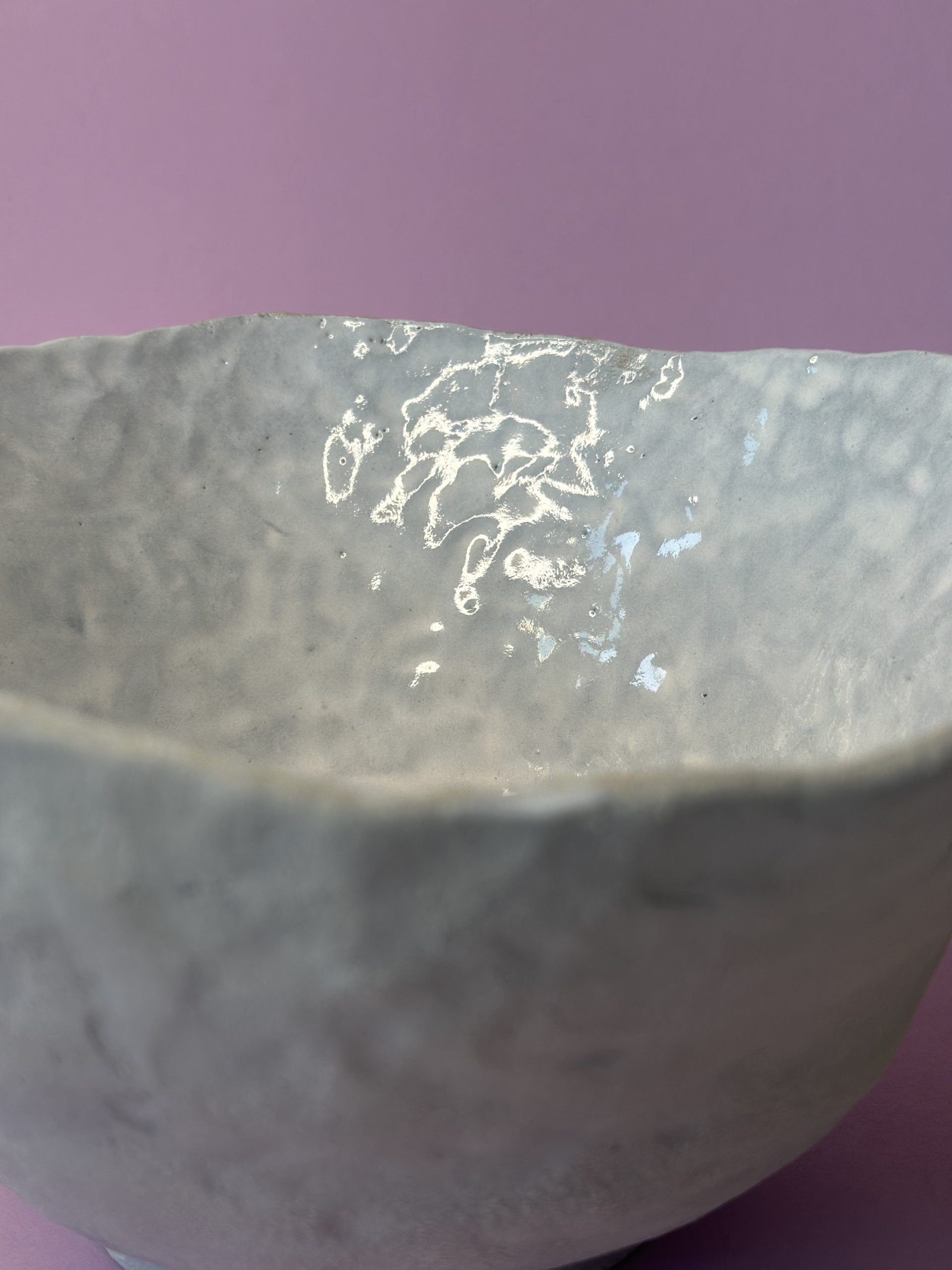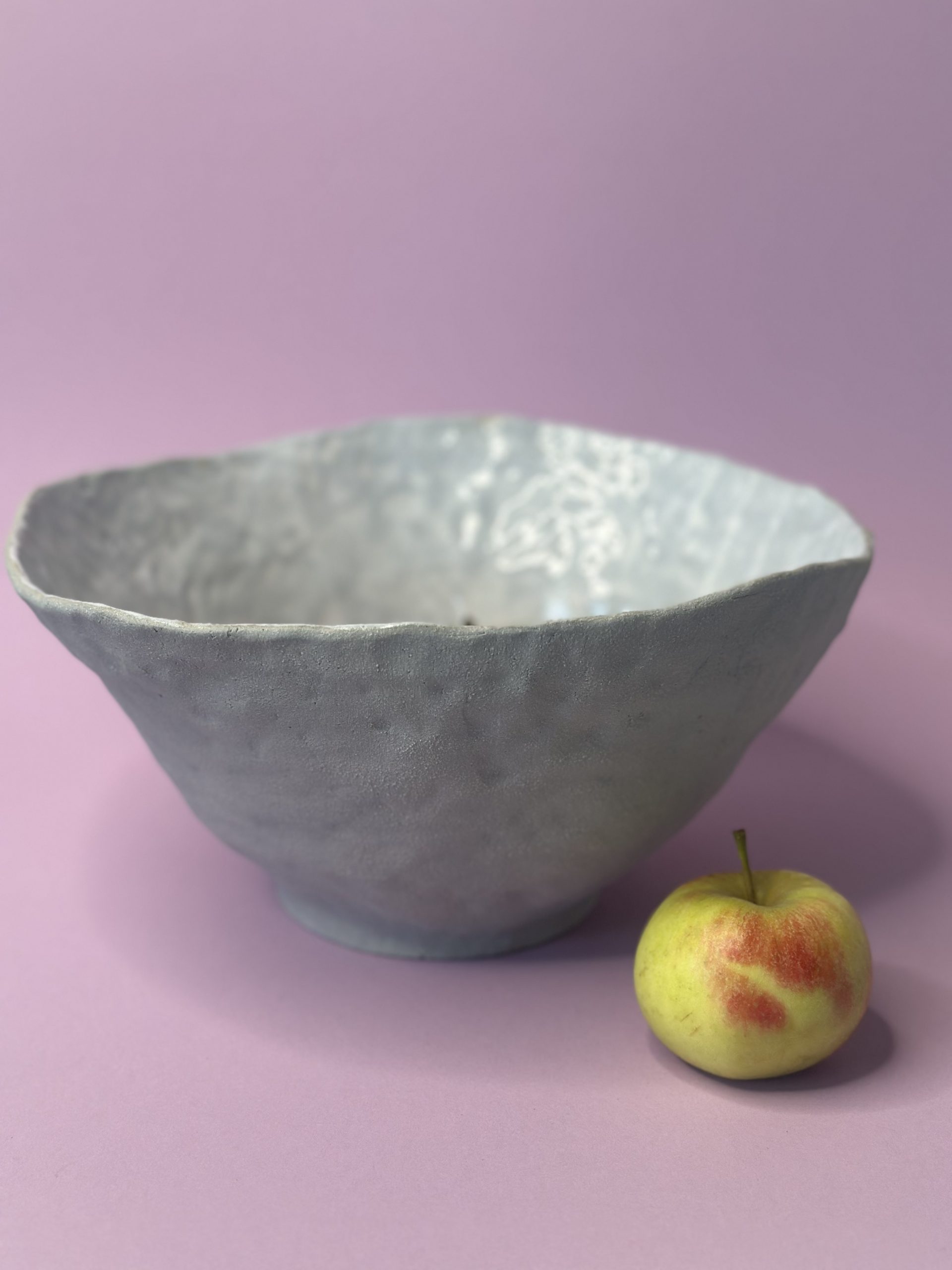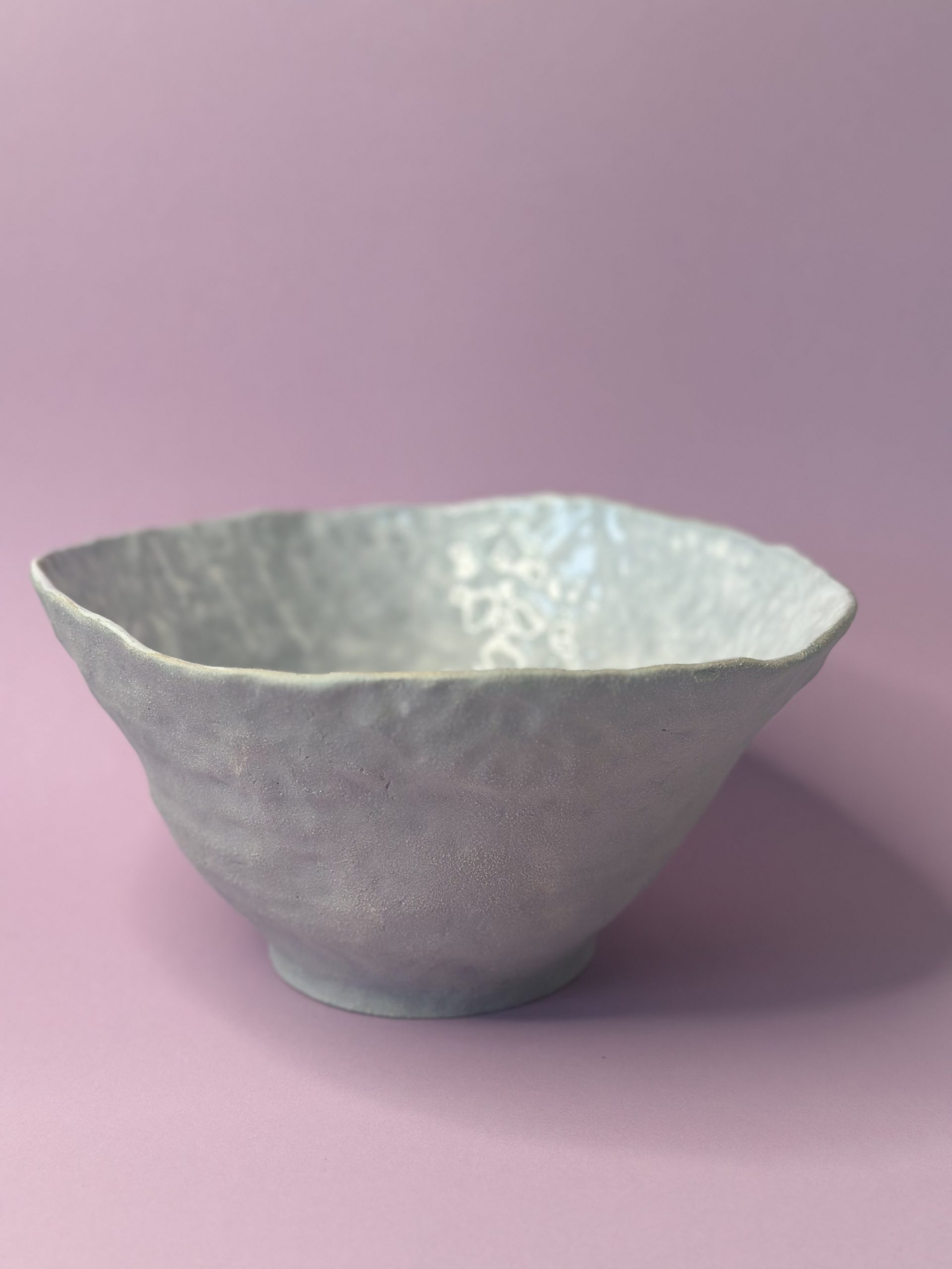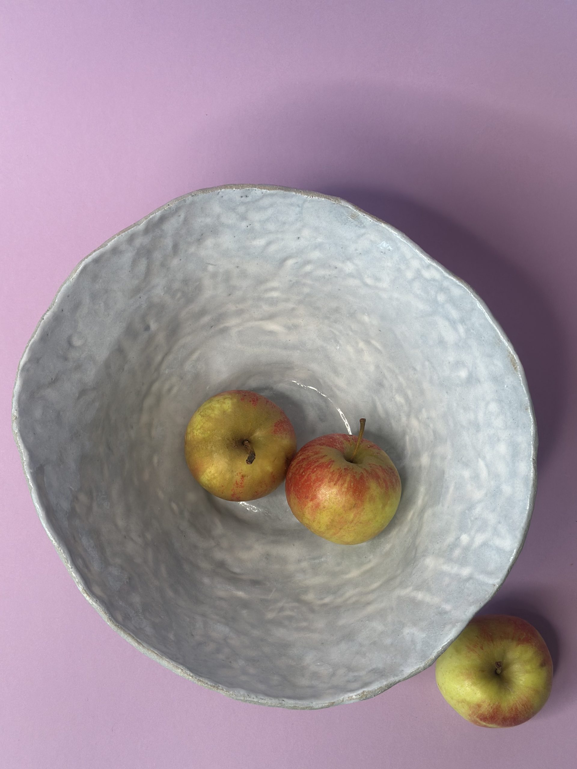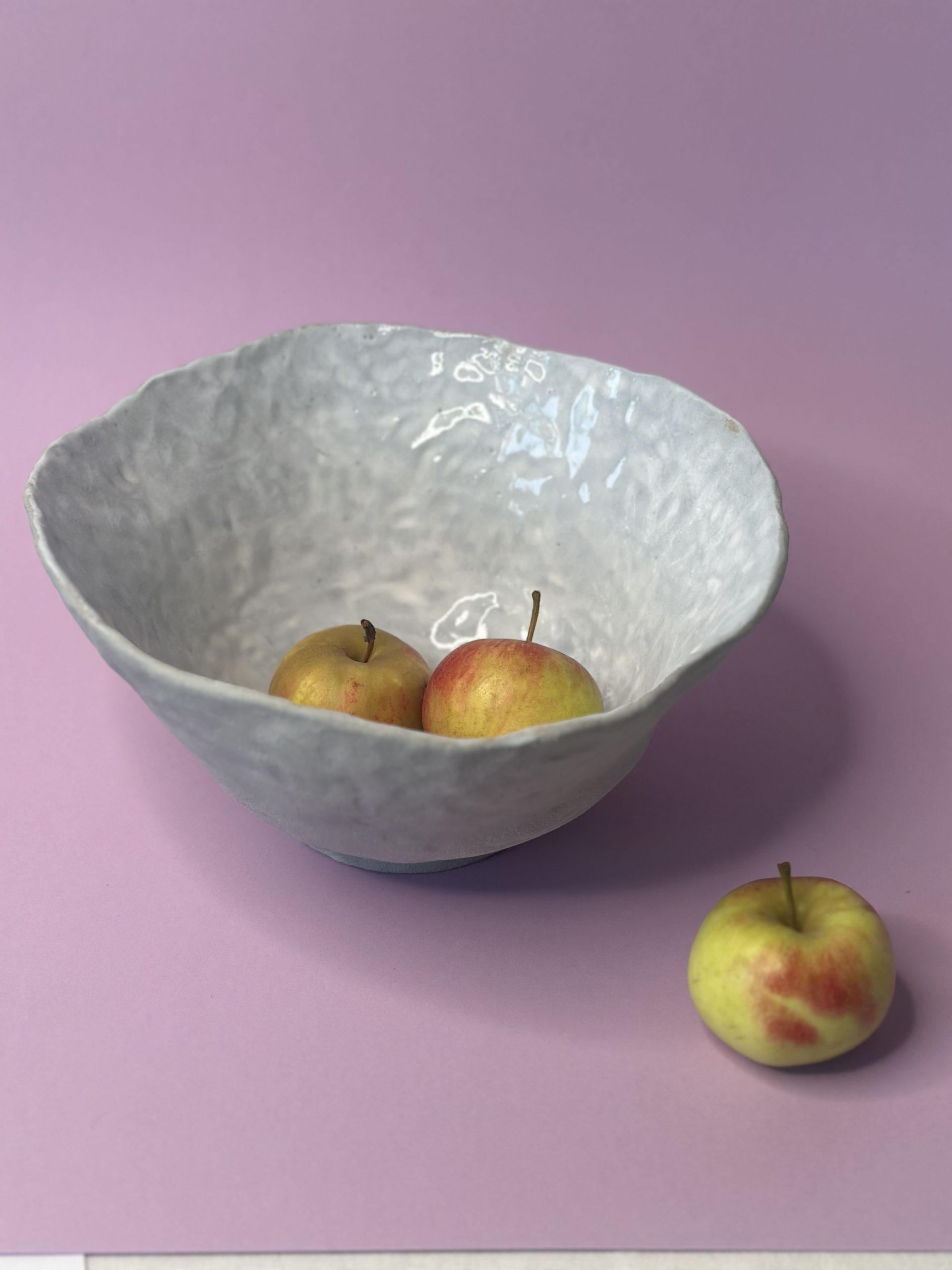 Diese handgefertigte Schale aus hellblauem Ton ist ein besonderes Unikat.